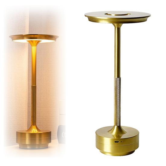 Lampă de masă metalică elegantă: Îmbunătățiți orice ocazie cu această lampă metalică elegantă, cu abajur rotund și bază conectată printr-o tijă centrală. Designul său servește ca o piesă centrală captivantă, aruncând o strălucire delicată de sub partea de sus pentru a ridica atmosfera de seară.