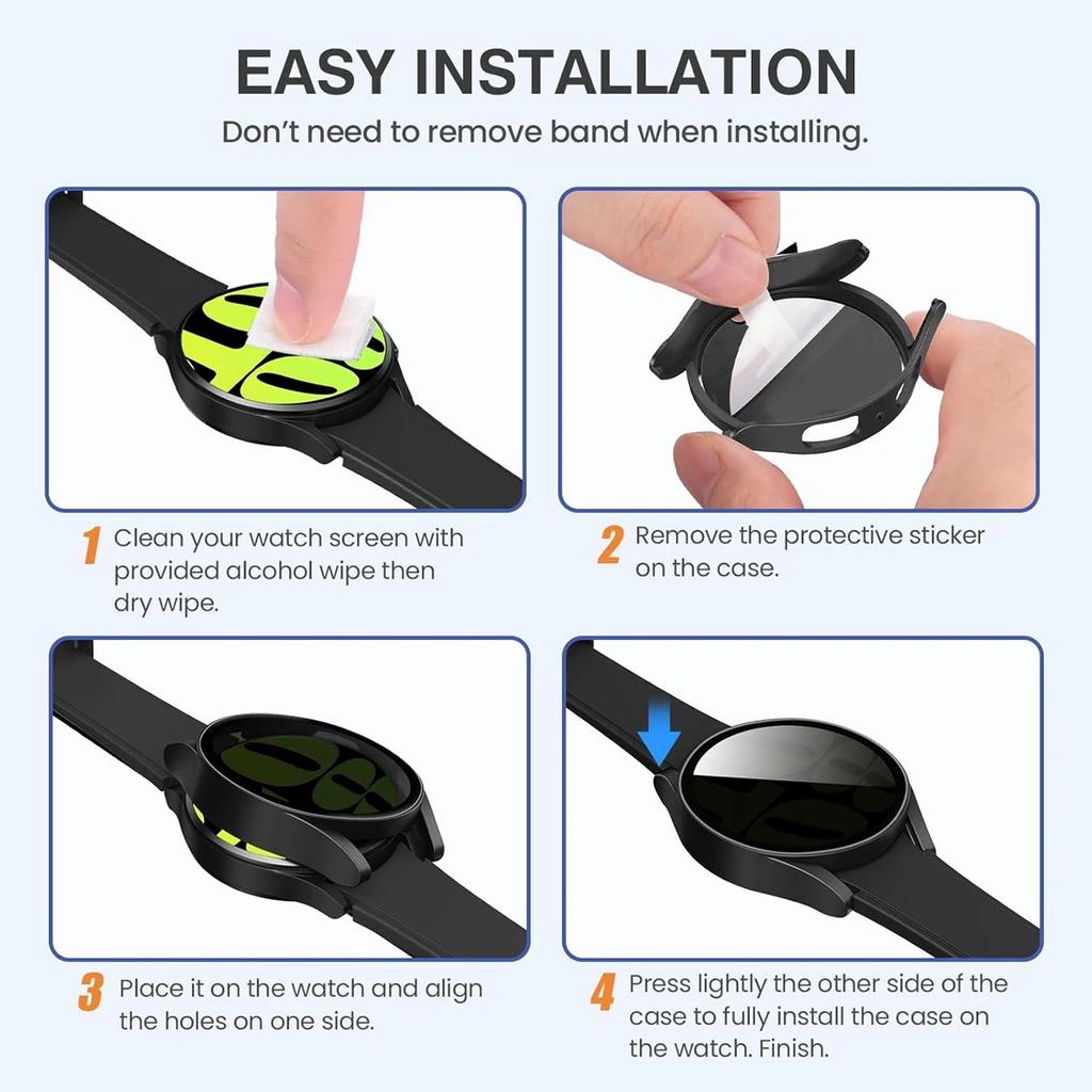 Glass Case +Band for Samsung Galaxy Watch 7/6/5/4 40 44mm Tempered PC Cover Silicone Sport Bracelet Watch 7/6/5/4 40 Accessories