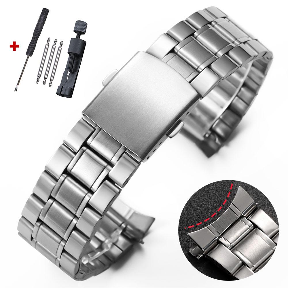 Arc End Stainless Steel Watch Band Universal Strap Folding Safety Buckle Metal Bracelet Straps 20mm 22mm Watch Belt Accessories