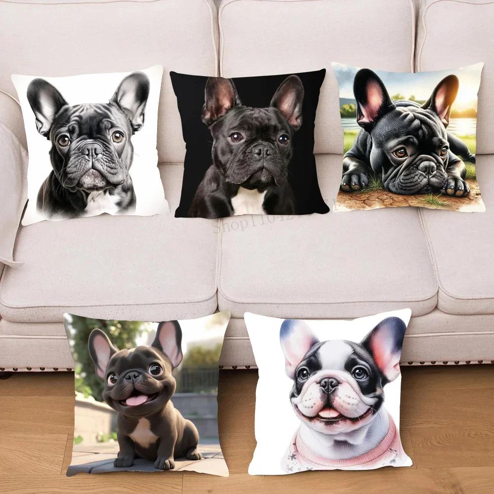 1pc Cute Pet Mini French Bulldog Pillow Case Square Bedroom Sofa Leisure Comfort Cushion Car Living Room Home Decoration