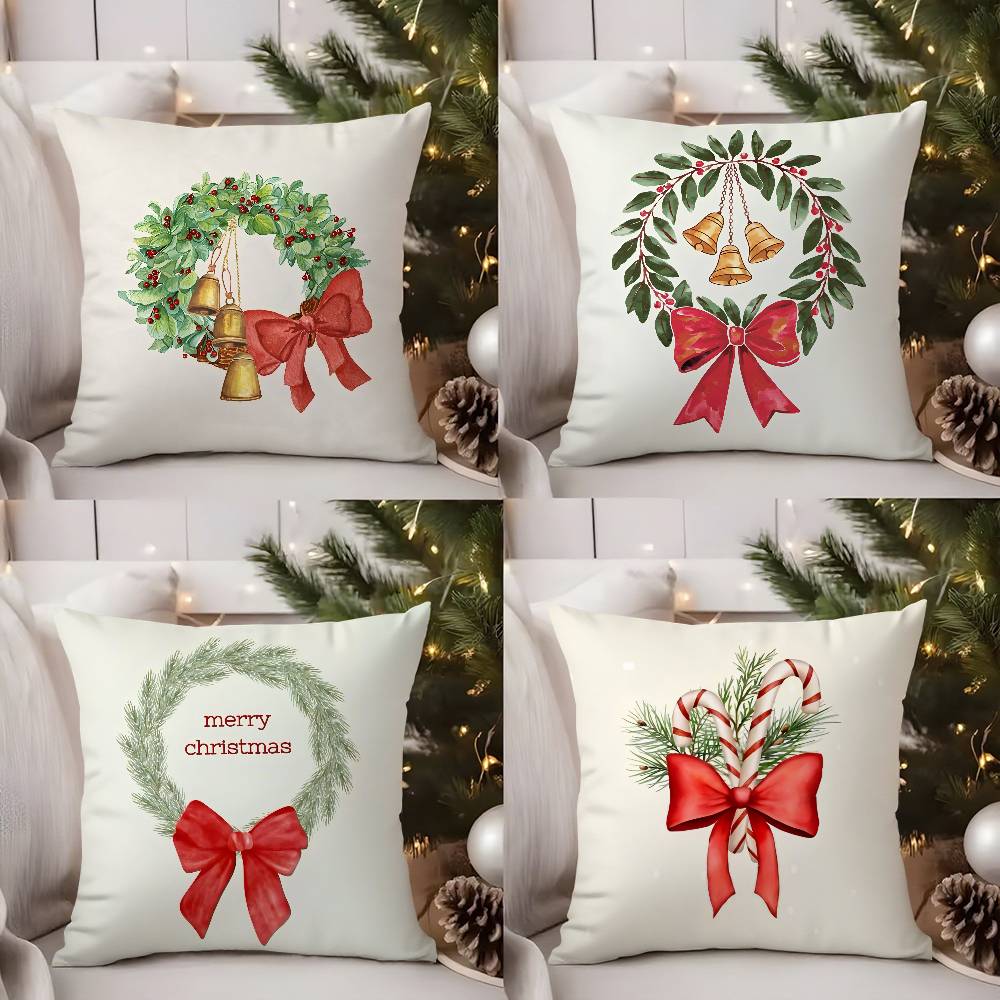 Merry Chrismas Red Bow Pillow Case Sofa Living Room Bedroom Double-sided Printing Square Cushion Nap Time Cushion Cover