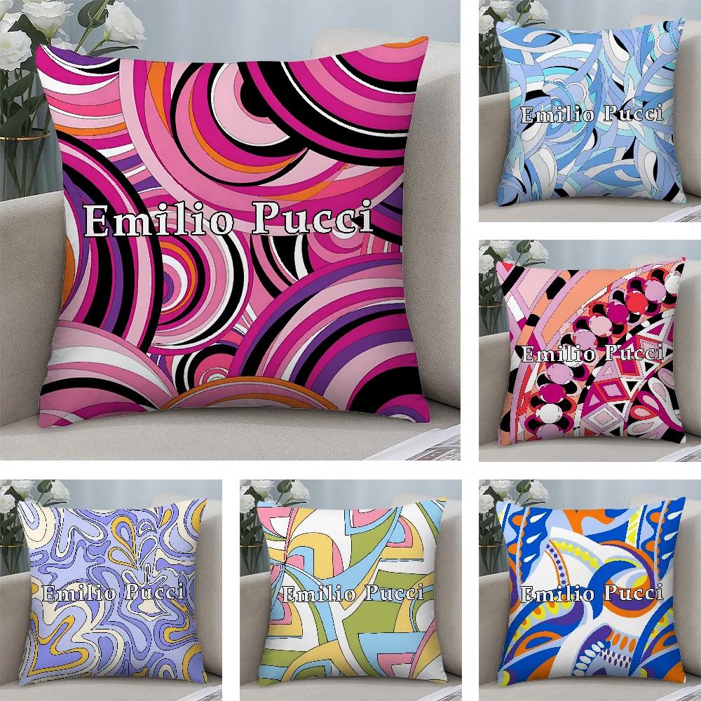 Fashion E-EE-Emilio logo P-Pucci Pillow Case Plush Fabric Soft Double Sided Print Sofa Cushion Cover Throw Pillow Covers