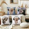 1pc Kitten With Headphones Pillow Case Square Bedroom Sofa Leisure Comfort Cushion Car Living Room Home Decoration