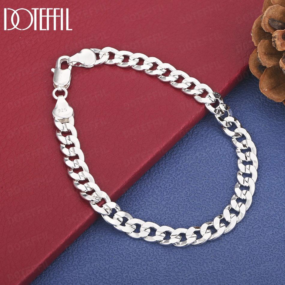 925 Sterling Silver 7mm Side Chain Bracelet Wedding Fashion Gift Jewelry