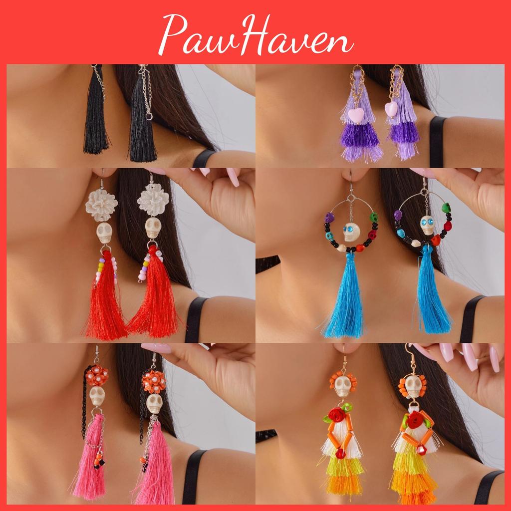 Skeleton Skull Tassel Earrings With Resin Material For Festive Halloween Wear