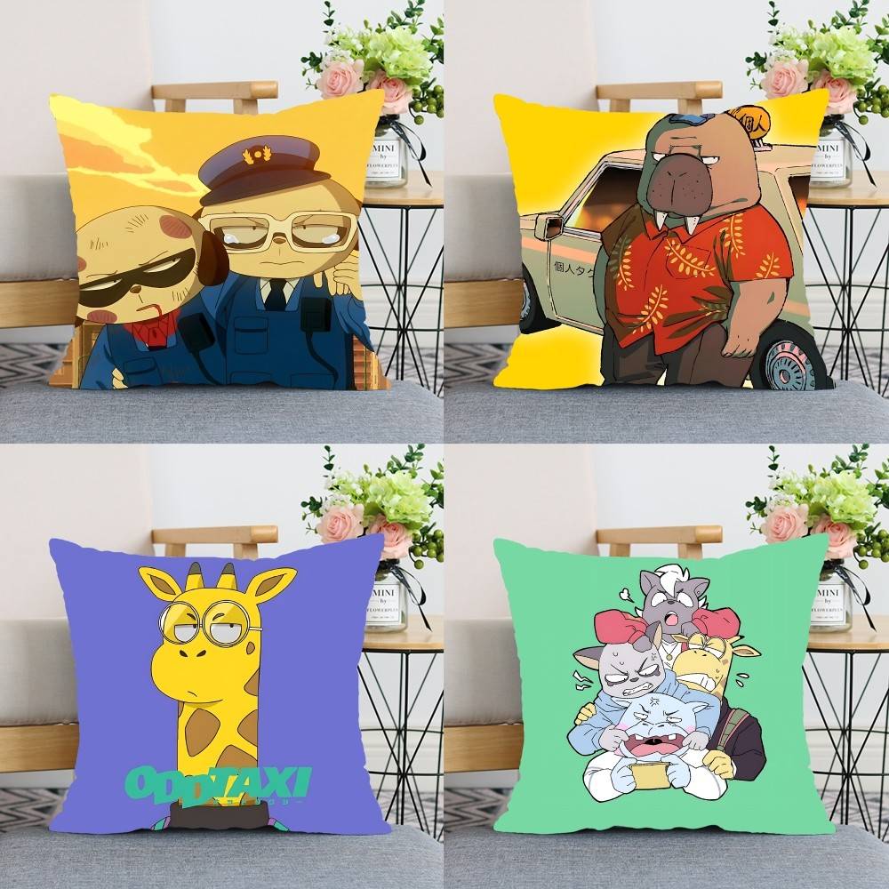 Cartoon O-Odd T-Taxi Pillow Case Throw Pillow Cover Nordic Vintage Style Cushion Covers Home Living Room Sofa Couch Seat Decor