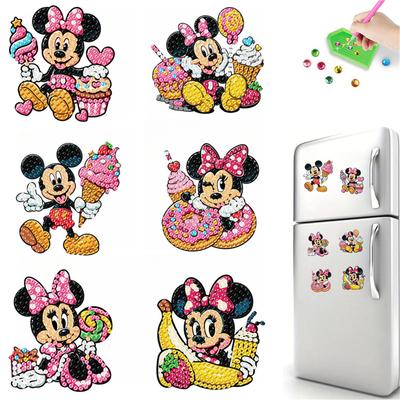 6 Bucăți Seria Mickey Artă cu Diamante Magnet de Frigider Pictură cu Diamante Magnet de Frigider Autocolante DIY pentru Frigider Table Albe