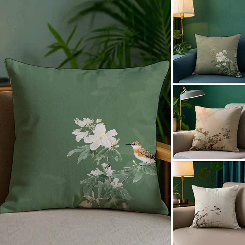 Chinese style flower Flower and bird printing Pillow Case Pillowcase Anti-dustmite Pillow Invisible zipper silky short plush Sof
