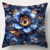 Blue Gold Floral Pattern Home Decor Pillow Cover Living Room Sofa Polyester Cushion Cover with Zipper