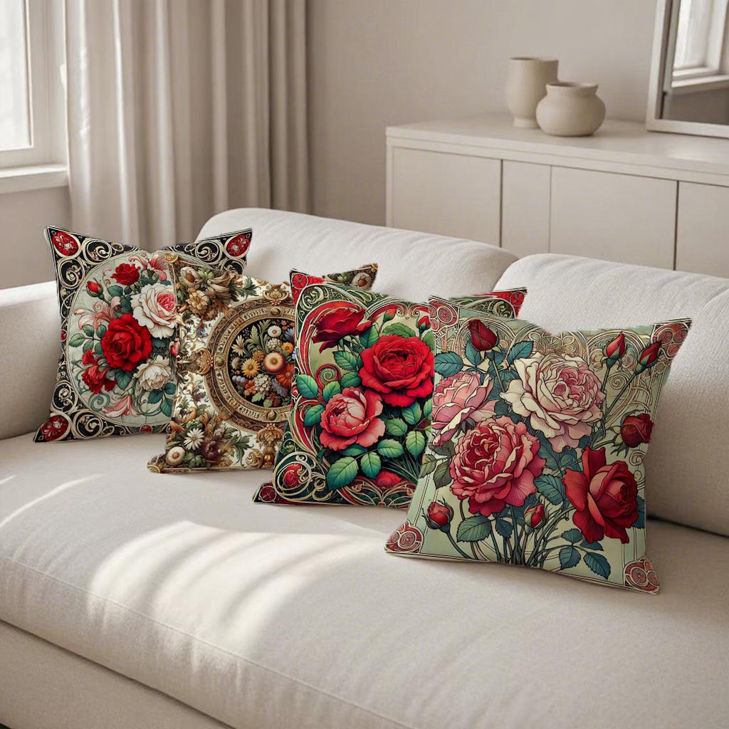 Fețe de pernă cu model floral pentru canapeaPotrivit pentru canapea, mașină, dormitor, husă decorativă pentru pernă, husă de pernă