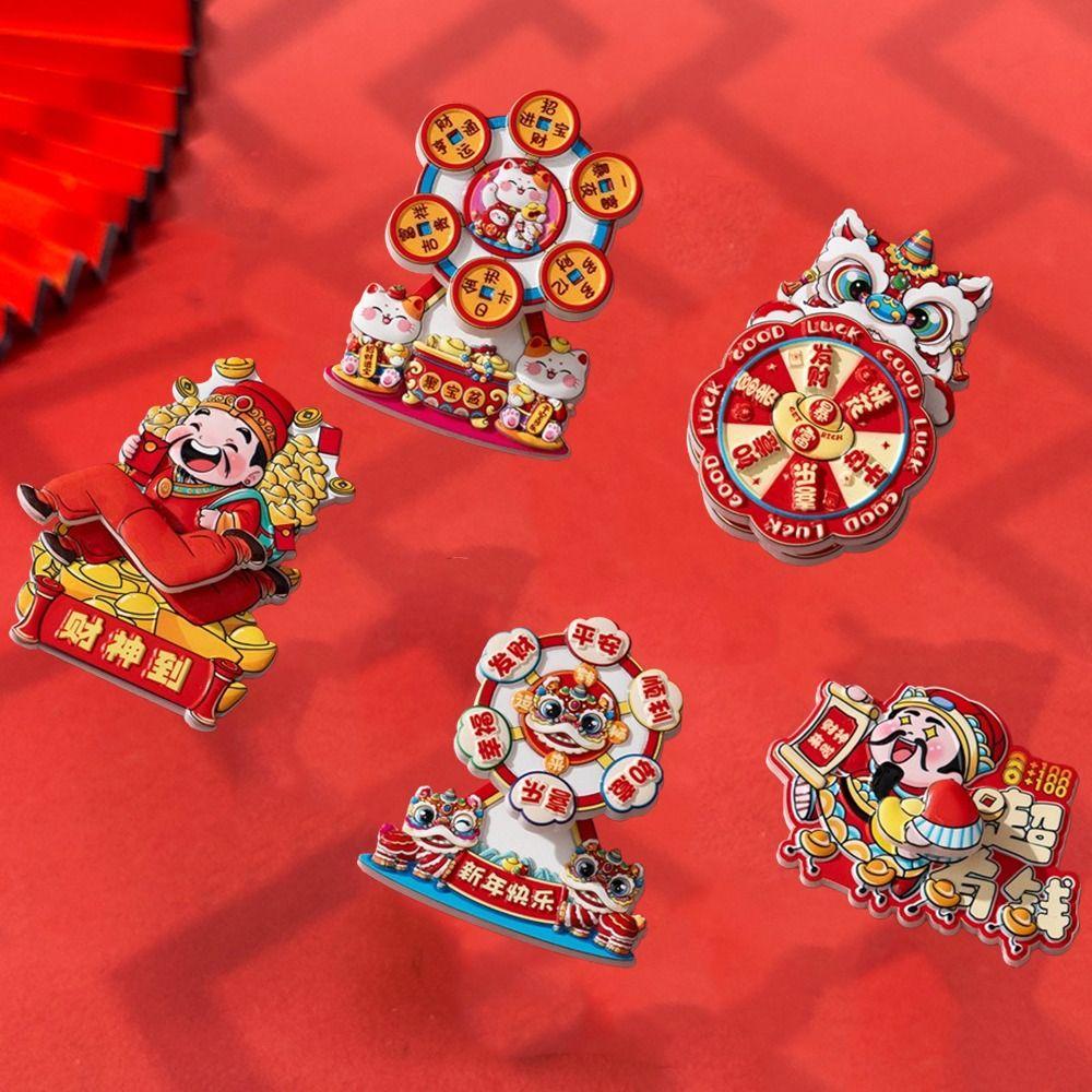 Cartoon New Year Refrigerator Magnets Chinese Style 3D Rotatable Magnet Celebration Party