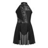 Girls Modern Lyrical Dance Dress Floral Lace Patchwork Cutout Back Rhinestones Leotard Stage Performance Dress