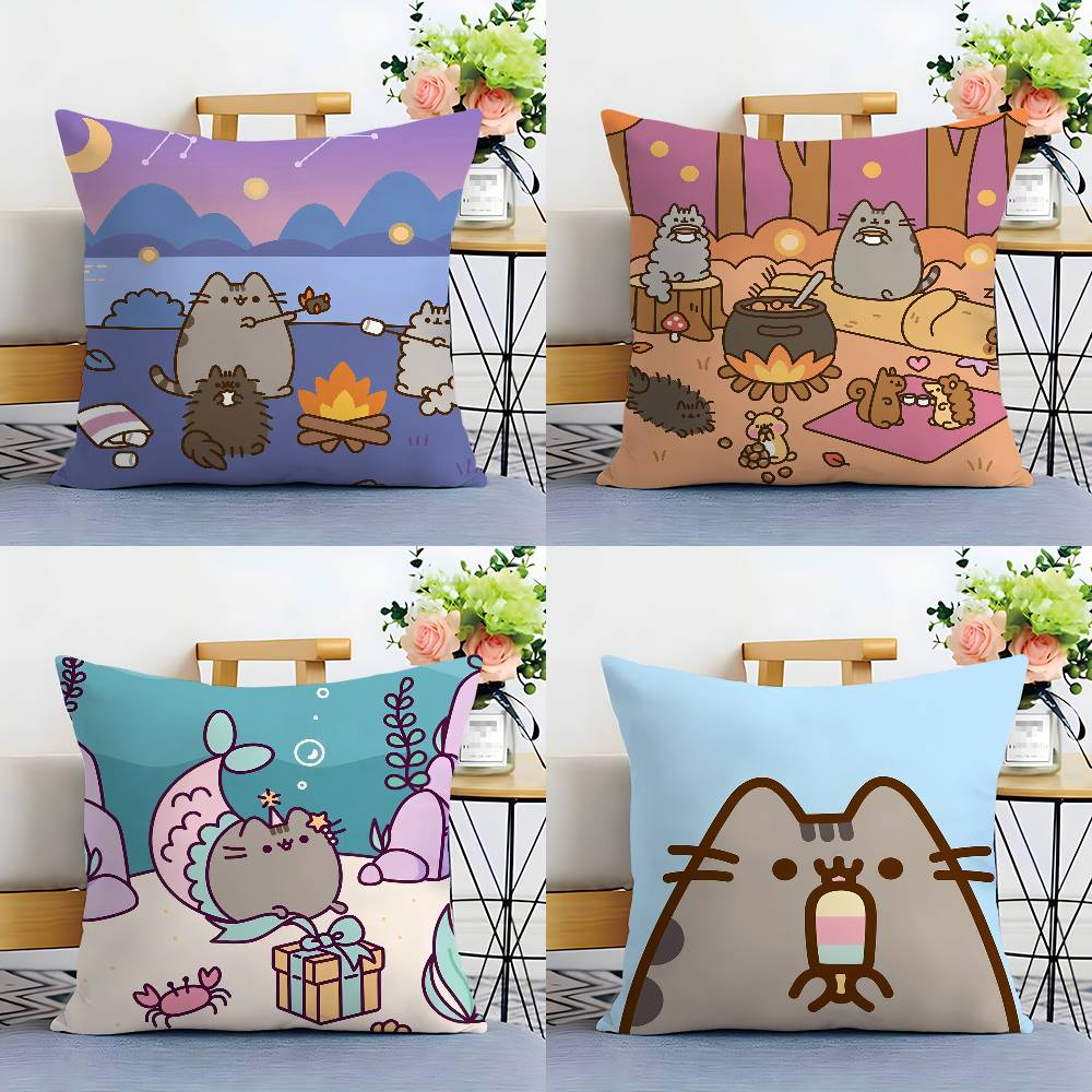 Kawaii P-Pusheen Cute cat Pillow Case Sofa Decorative Home Double-sided Printing Short Plush Cushion Pillow Cover Holiday Gift
