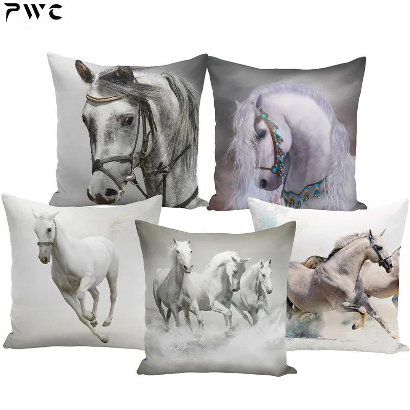 Față de pernă 45x45 Seturi de huse de perne cu imprimeu animal de război, cal alb, pentru scaun, canapea, decor decorativ pentru casă, fermă