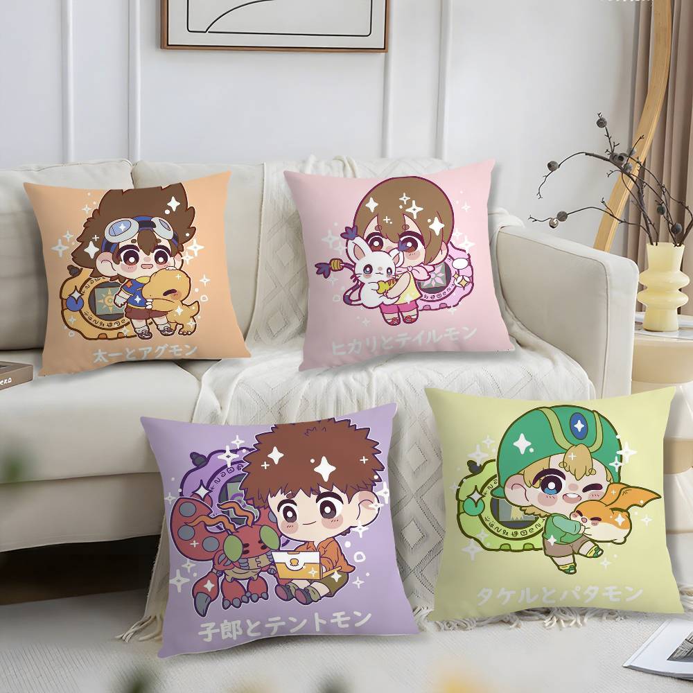 Cute D-Digimon Adventure Pillow Case Short Plush Print Cushion Cover Square Throw Pillow Covers Sofa Home Decor
