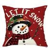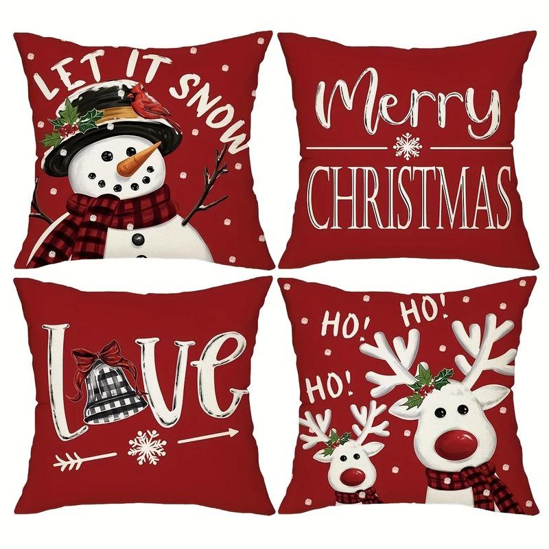New Red Christmas Pillow Cover 45x45cm - Snowman & Deer Printed Holiday Cushion Case, Festive Xmas Decor for Living Room Sofa