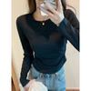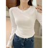Retro front shoulder long-sleeved T-shirt women's spring new waist pleated bottoming shirt versatile simple top