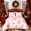 3pcs pink Merry Christmas gingerbread printed coreless bedding set multi size bedroom bedding holiday decoration comfortable