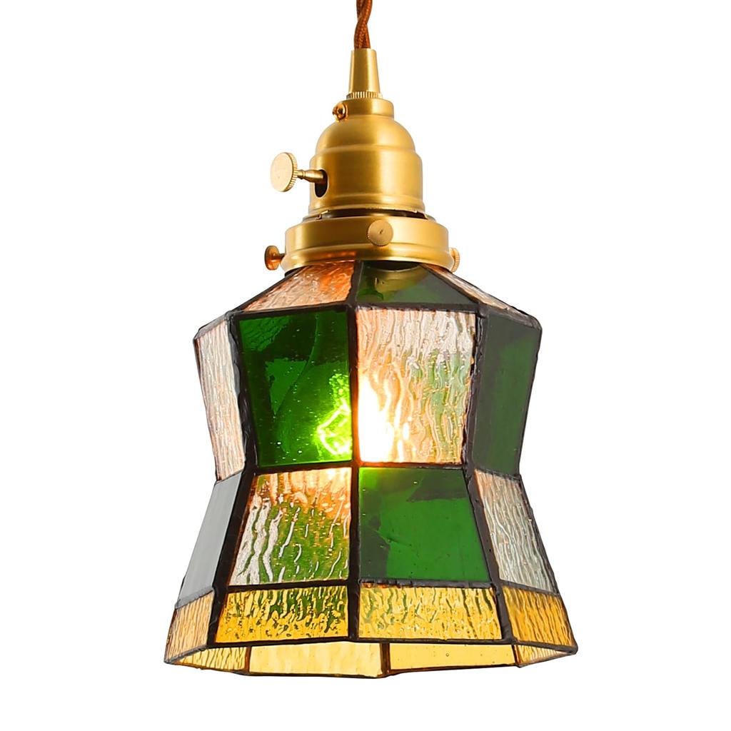 Stylish Pendant Light with Glass Shade, Brass Socket, LED Compatible (E26), Adjustable Cord, Stained Glass Design - Green and Amber (Bulb Sold