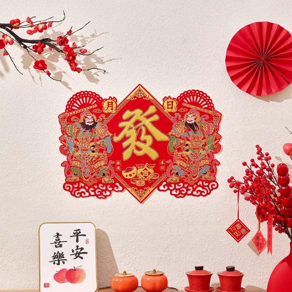 Traditional God Door Sticker Velvet Chinese New Year Couplet Creative God of Wealth Sticker Office