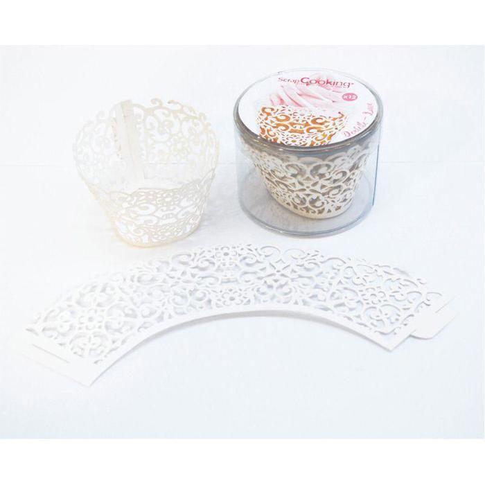 Contours pour cupcakes - SCRAP COOKING - Dentelle - 12 pièces - Blanc - Ø23,5 cm