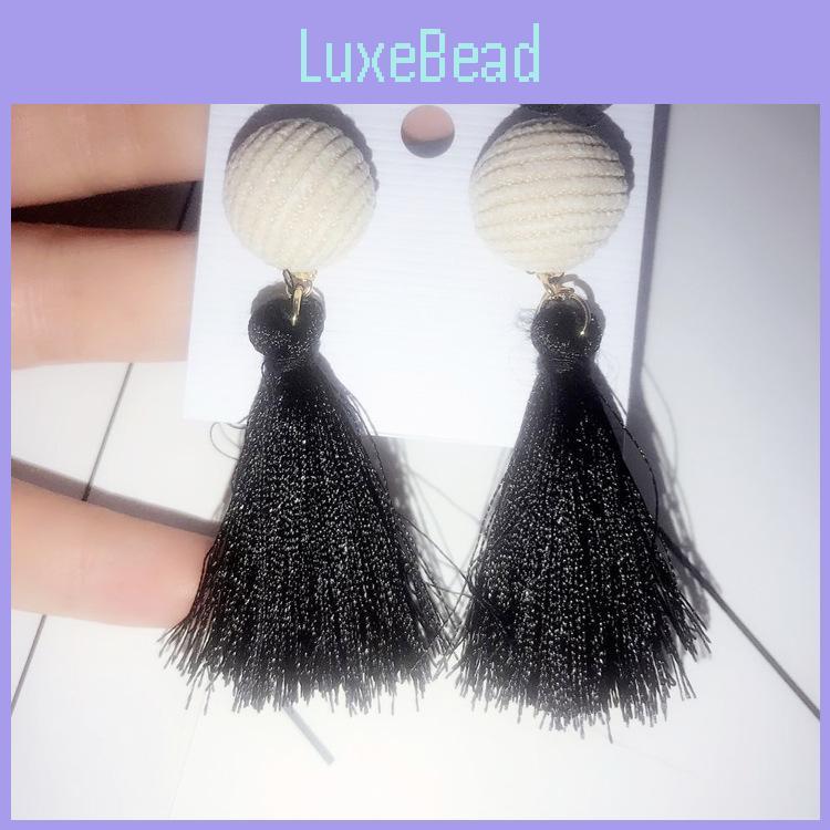 Sweet Korean Elegant Button Tassel Pendant Personality Long Earrings Temperament