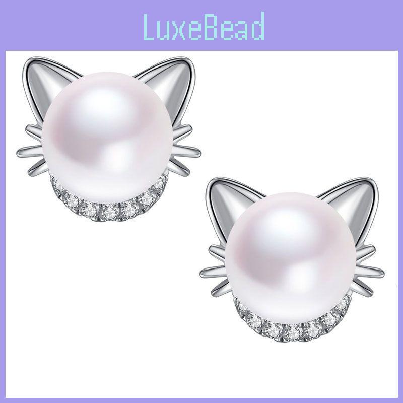Cute Pearl Cat Stud Earrings Silver Jewelry Wholesale