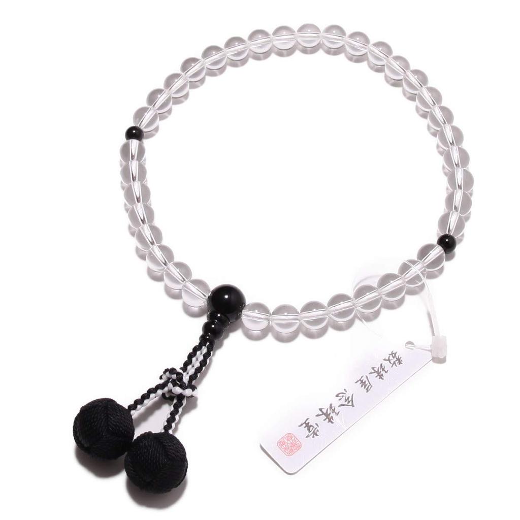 Nenjudo Made in Japan Women's Prayer Beads, Genuine Quartz and Black Onyx, Silk Tassel, Prayer Beads Bag Included, Suitable for All Sects