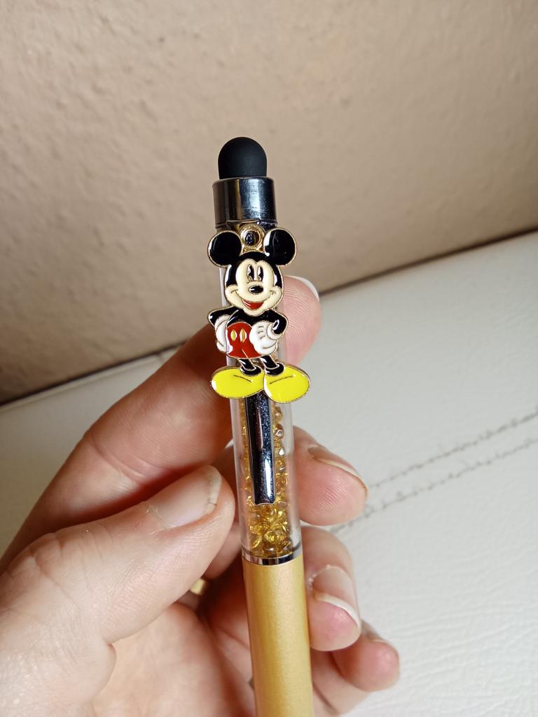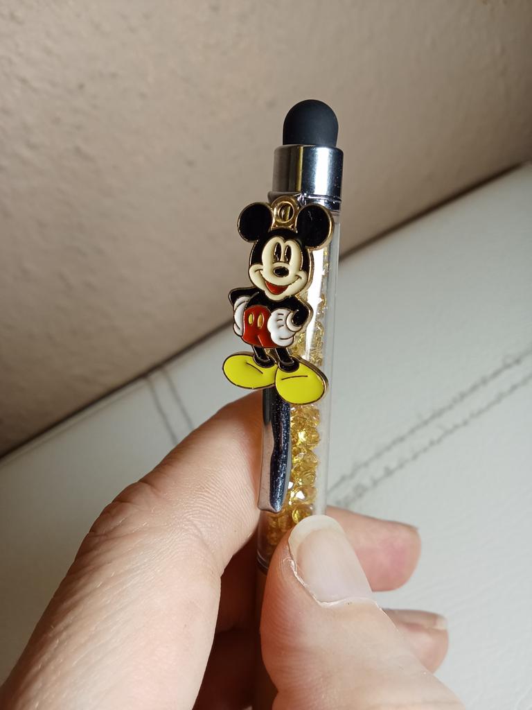 Un stilou 🖋️ spectaculos 🥰 Designul este superb 😍 Nu le lipsește niciun detaliu 😝 Are un Mickey Mouse foarte frumos Cârlig pentru agățat 👌 Decorat cu pietricele în interior 🩷 Adevărul că este frumos 🤩 Arata foarte frumos 😍 Prezentare frumoasă ideală pentru un cadou 🎁 Recomandat 100% 💯 Ambalare corectă 📦 Livrare rapidă ✈️ Preț accesibil 🤑 În plus, are un vârf de cauciuc pentru a fi folosit pe ecranul tactil al unui computer 🖥️, al unei tablete sau al unui telefon 📱.