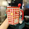 Girls’ Good looking Red Festive Ceramic Mug New Year’s Mug with Lid and Spoon Gift for Besties As Souvenirs
