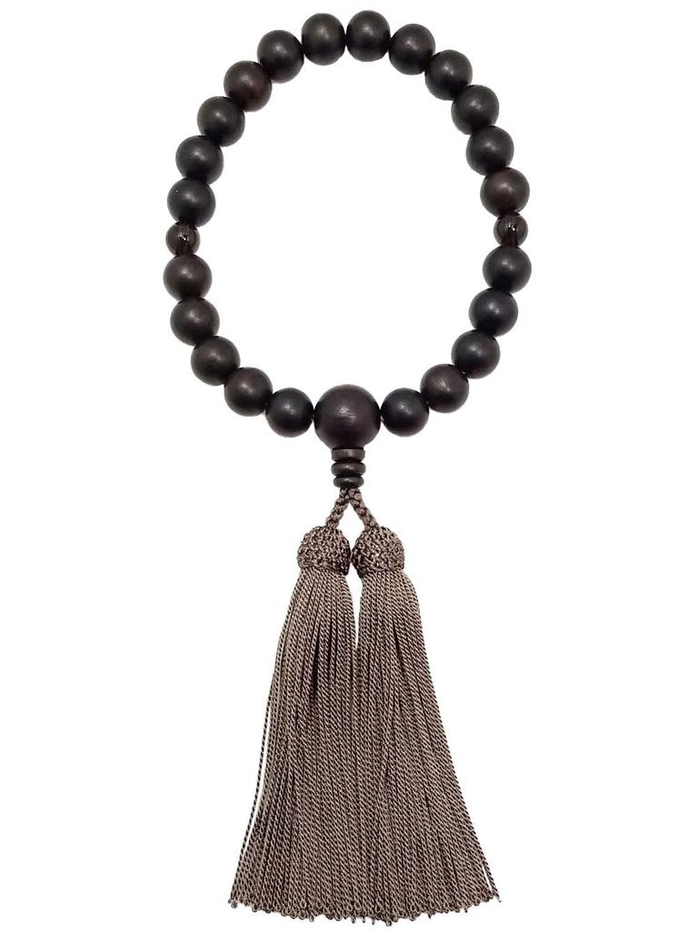 Kyoto Buddhist Prayer Beads for Men, Glossy Striped Ebony with Brown Crystal, Rayon Tassel, Paper Box - Suitable for All Sects -
