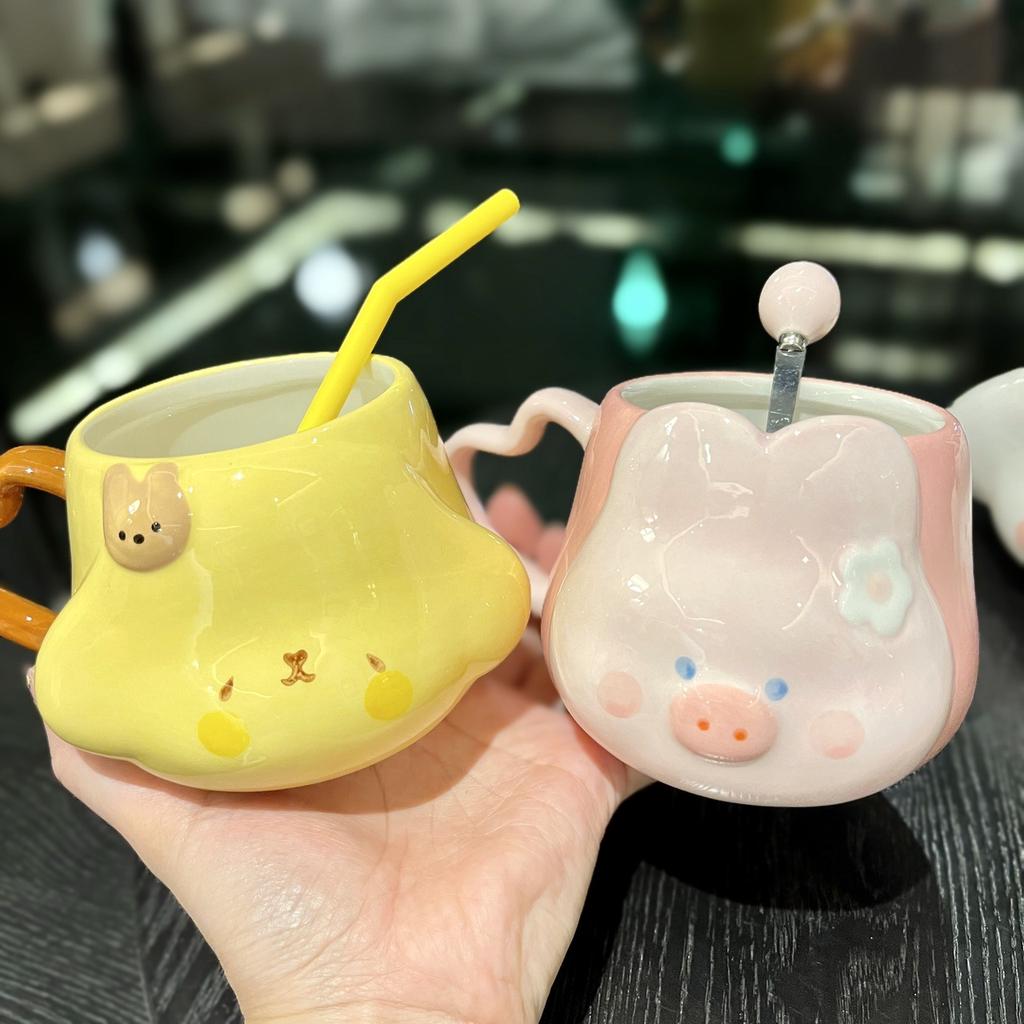 Cute Fufu Dog Mug Girly Heart Student Super Cute Mug Cartoon Anime Style Ceramic Water Cup