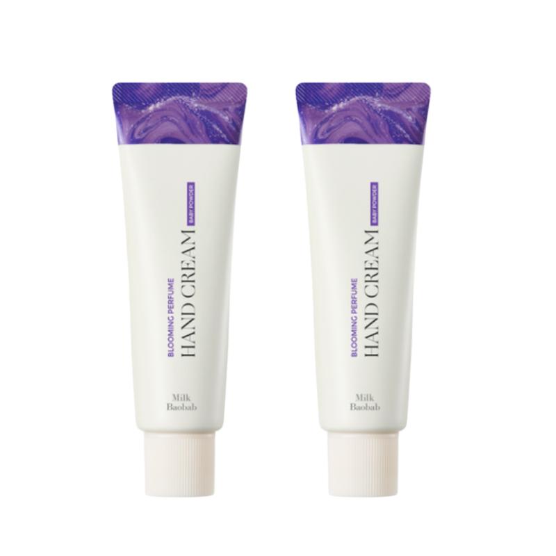 A delicate hand cream with a soft baby-powder scent, formulated to deeply moisturize and soften hands. Enriched with nourishing baobab seed extract and milk-derived emollients, it helps soothe and protect dry skin while leaving a subtle, comforting fragrance. Fast-absorbing and non-greasy, the cream leaves hands smooth, soft, and lightly scented — perfect for daily use at home or on the go. The set includes two 50 g tubes for added value and convenience.