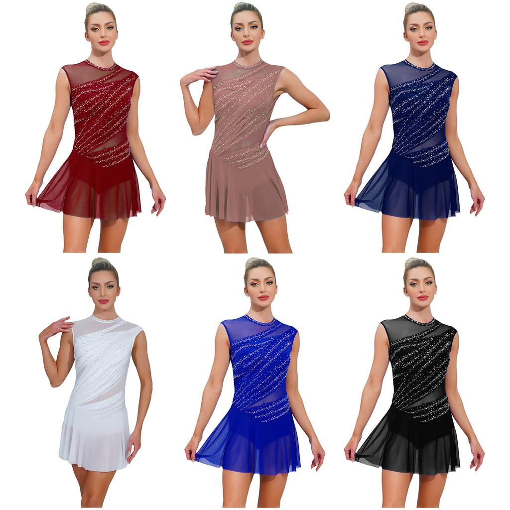 Costum Gimnastică Femei Patinaj Artistic Latin Balet Body Fără Mâneci Strasuri Tango Chacha Haine Dans Performanță