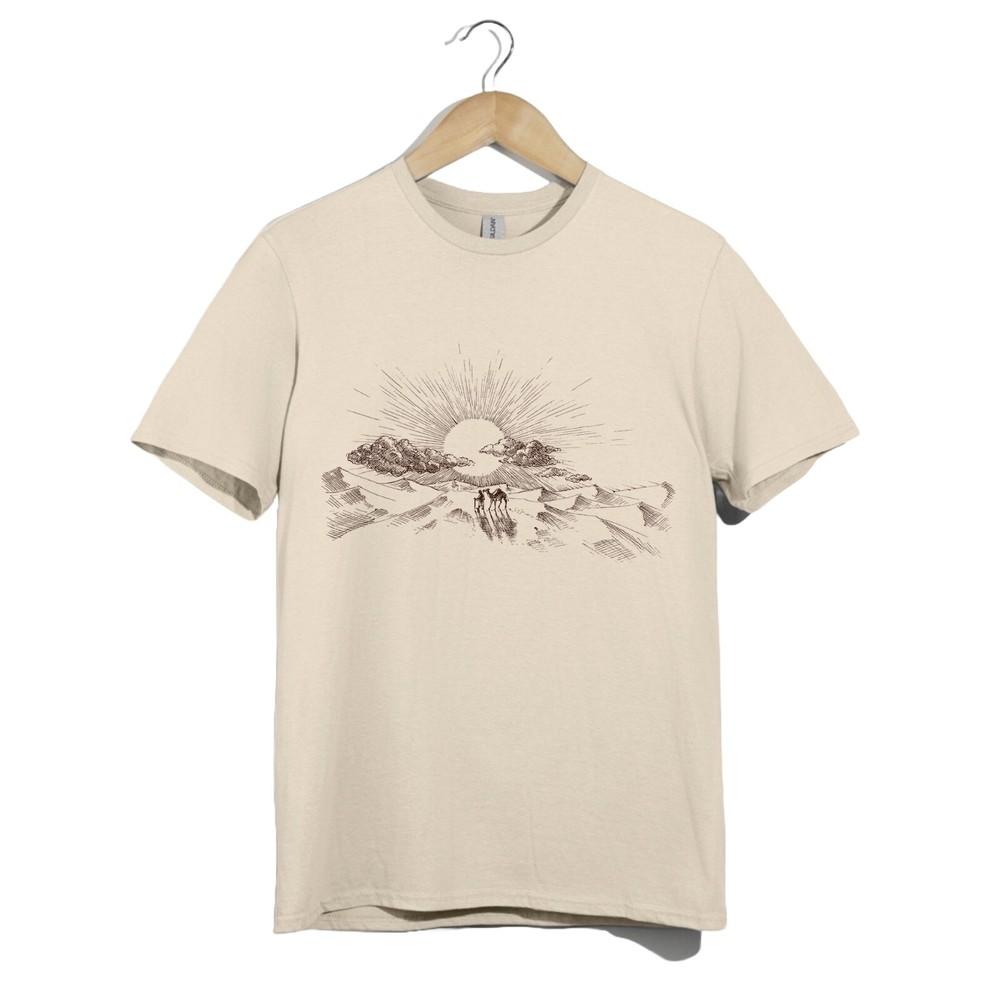 Desert Sunset Camel T-Shirt | Vintage Nomad Art Graphic Tee Unisex Boho Style
