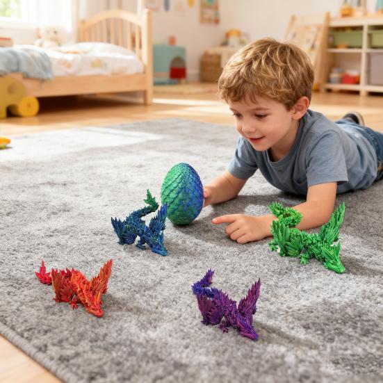 Discover the dragon egg ornament, a dynamic and realistic collectible featuring fully movable joints for lifelike poses. Crafted from durable PLA material using advanced 3D printing technology, this dragon figure offers detailed design and sensory stimulation, making it both a fun toy and an effective stress-reliever.