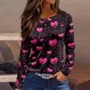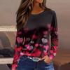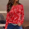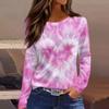 Moda damă ocazional tiv cu fante cu gât rotund, cu mânecă lungă, tricou imprimat liber Top pentru damă