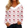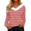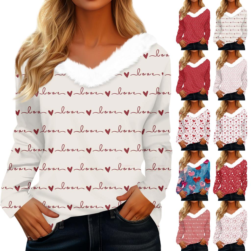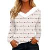 Women's Valentine's Day Printed Long-Sleeved Shirt, V-Neck, Casual Loose-Fitting T-Shirt Top
