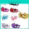 Elegant Lace Masquerade Mask With Rhinestone Flower Accents For Women's Halloween Costume Props