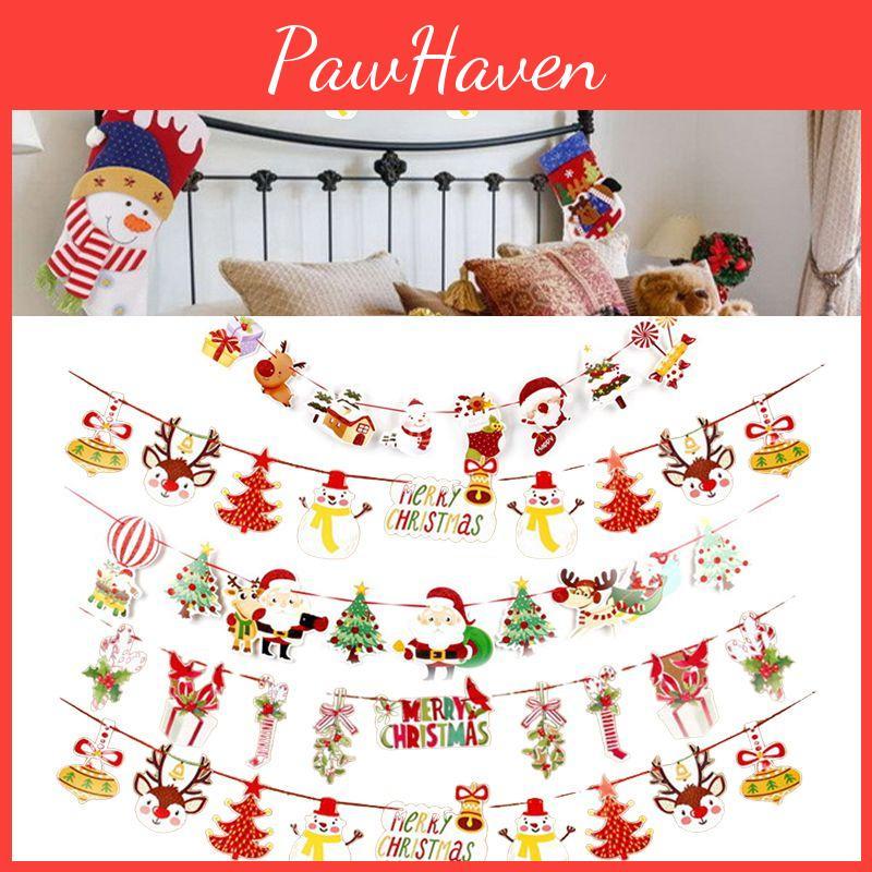 Unique Christmas Pulling Flag Ornament Cartoon Santa Claus Hanging Banner Decor