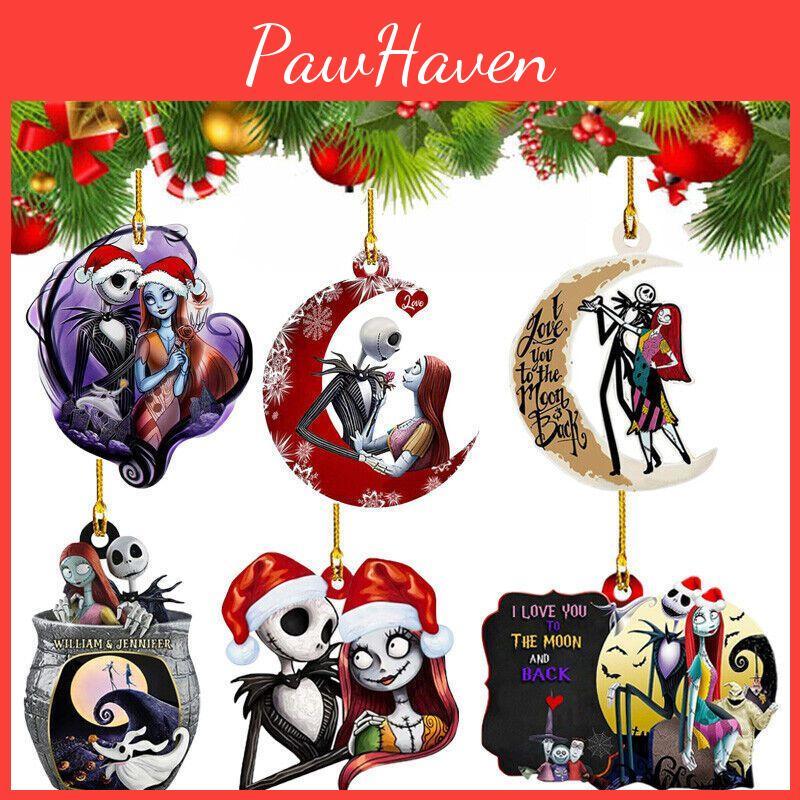 Nightmare Before Christmas Jack Sally Xmas Tree Pendant Halloween Decor Acrylic Gift