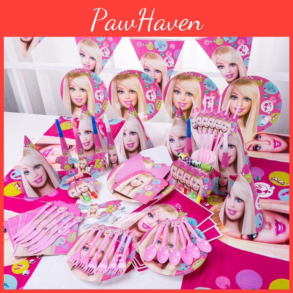 Barbie Doll Pink Birthday Supplies For Girls With Complete Tableware And Toys
