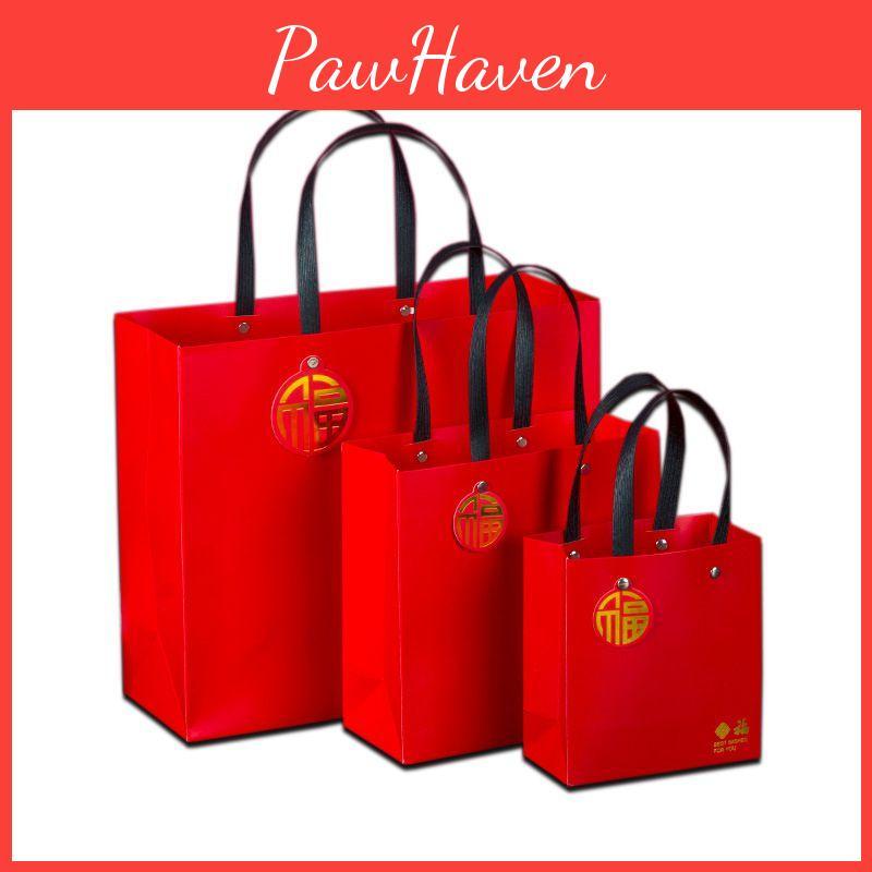 Eco-friendly Red 2022 Tiger Year Zodiac Gift Bag With Sturdy Handles For All Occasions