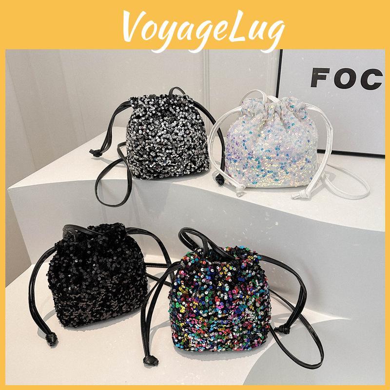 Trendy Sequin Drawstring Bucket Bag For Women In Colorful Stylish Design