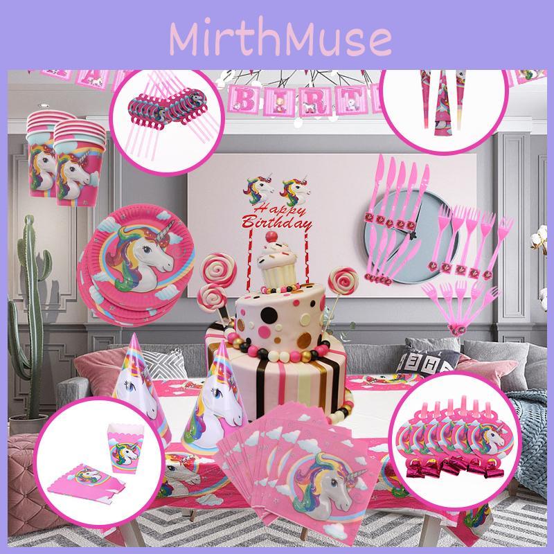 Magical Unicorn Kids Birthday Party Supplies Featuring Colorful Plates Cups And Banners