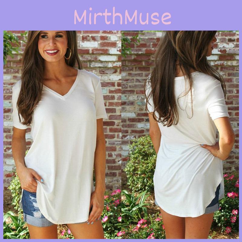 Stylish Women's Short Sleeve V-neck Hem Loose Casual Tee T-shirt For Summer Days
