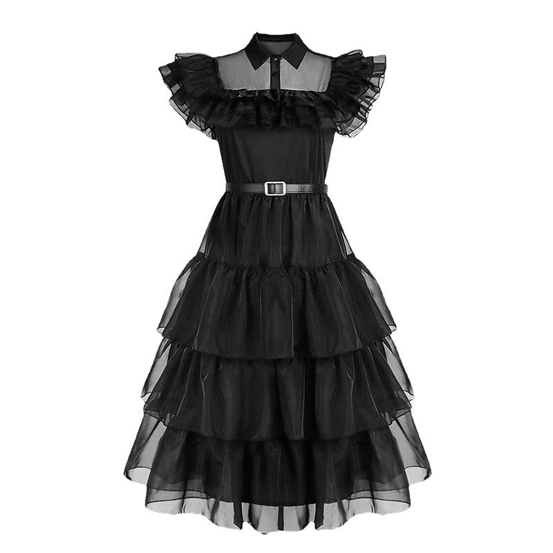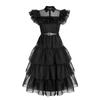 Wednesday Addams Kids Dress Cosplay Costume Party A-shaped Tiered Skirt