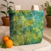 Generously sized for daily life, the rectangular body and 12 cm gusset create easy space for produce, books, a scarf, and a water bottle. It folds flat when not in use, tucks into a suitcase for travel, and moves with you from market mornings to studio hours to unhurried walks. Resist-dyeing is a traditional technique found in many cultures, where areas of cloth are protected from dye to form motifs; the result here is a calm, flower-like center that brings a gentle point of focus to the design.