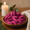 Small, uniformly shaped cones in olive green stand upright on their flat base, with a matte, finely compacted surface and gently tapered tips. At 25 mm high, each cone offers a steady smoulder, releasing frankincense’s bright, balsamic lift layered with myrrh’s earthy sweetness and dry spice — a classic, resin-rich aroma for reflective moments. In India, incense cones (often called dhoop) have long accompanied daily rituals and moments of welcome; this blend sits gently within that tradition. 🌿