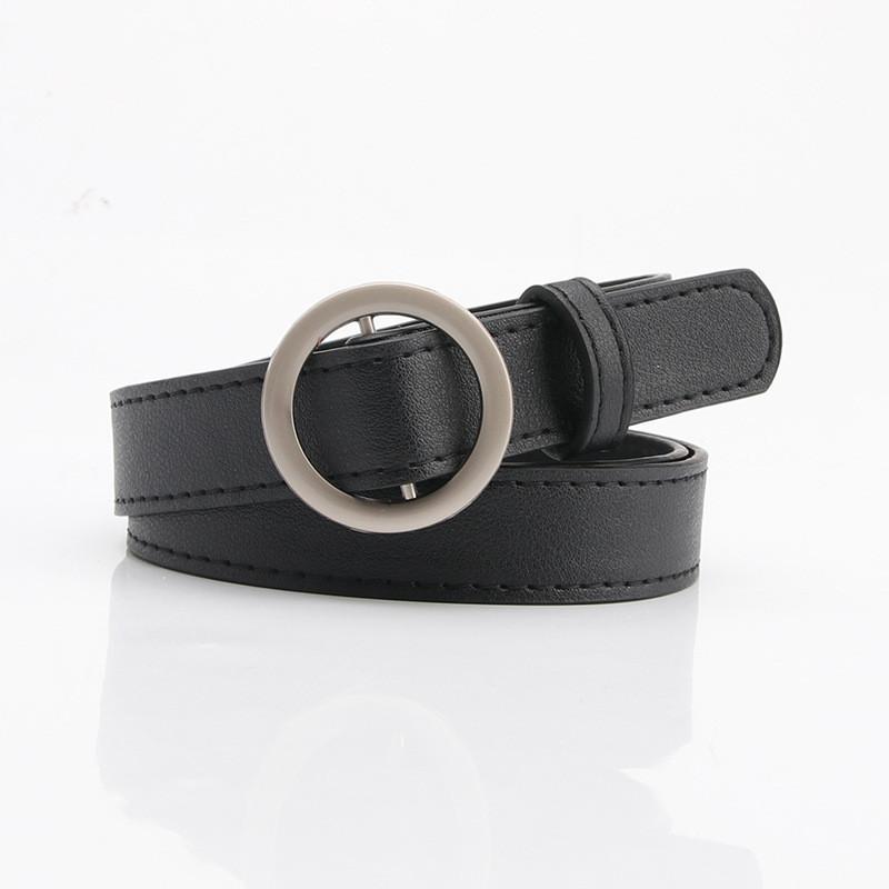 Minimalist Faux Leather Belt For Women With Alloy Round Buckle For Daily Use